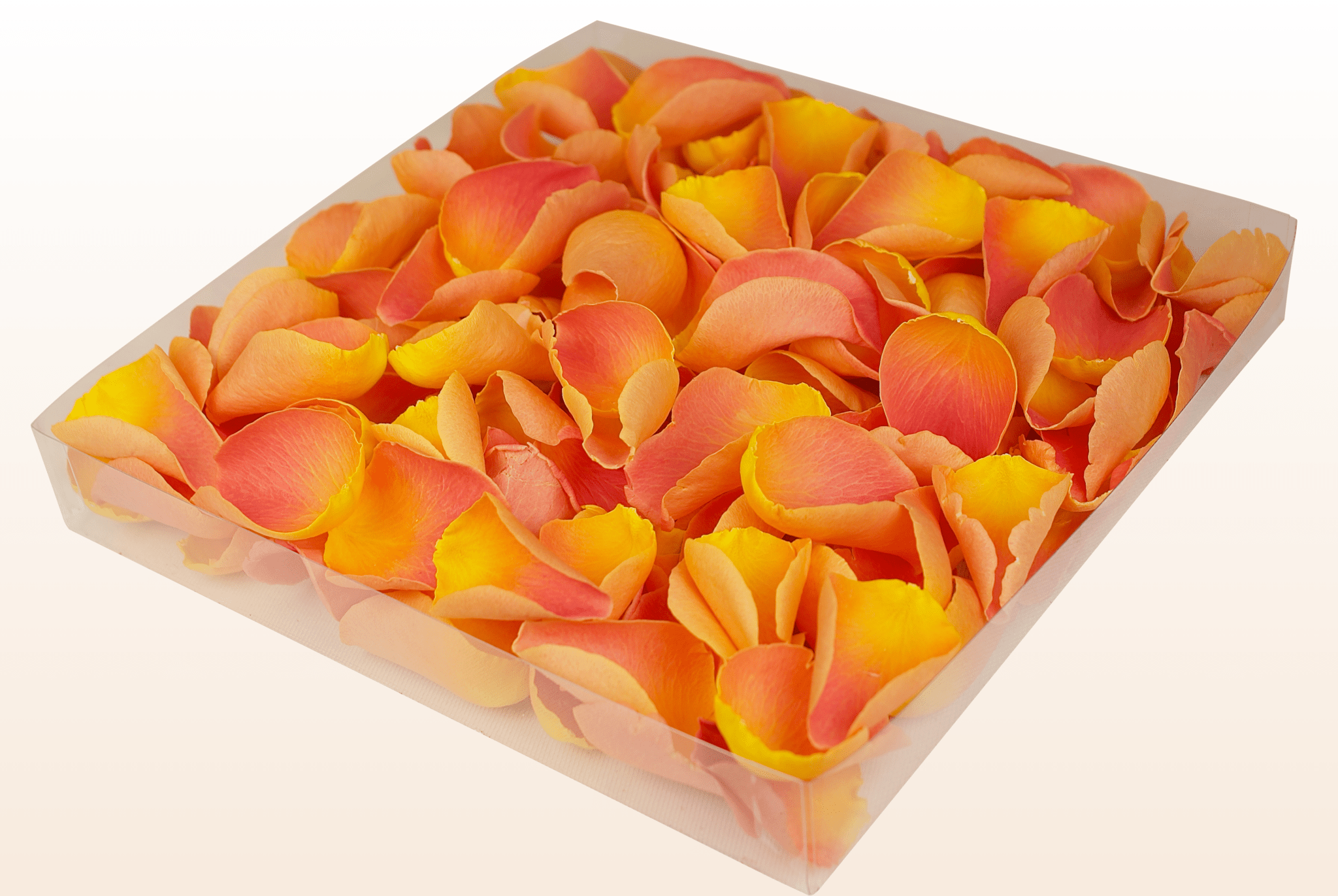 Preserved rose petals are also bio-degradable  but feel softer and do not break into pieces. These petals have been coloured and therefore can stain. Provided they are kept in a dry, dark place, preserved rose petals can be kept for between 1 to 2 years. After this period, the rose petals may begin to lose their colour.